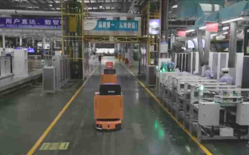 为车载冰箱物流配送打造的智能解决方案,,,包含产中物流通过潜伏举升AMR搬运至线边,,产后成品物流智能仓储,,,流程包含产中物流智能齐套入库,,,线边安灯叫料AMR智能配送至线边,,,成品入库、、、、出库,,,通过无人堆高车机器人,,,智能仓储管理替代人工作业管理,,,实现更高存储、、更高效率、、、更具柔性化的解决方案。。。